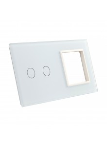 Szklany panel na włącznik podwójny + gniazdo/termostat Livolo.