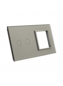 Szklany panel na włącznik podwójny + gniazdo/termostat Livolo.