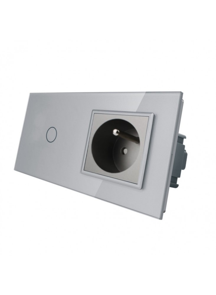 Włącznik dotykowy pojedynczy + gniazdo Livolo z bolcem | Szary